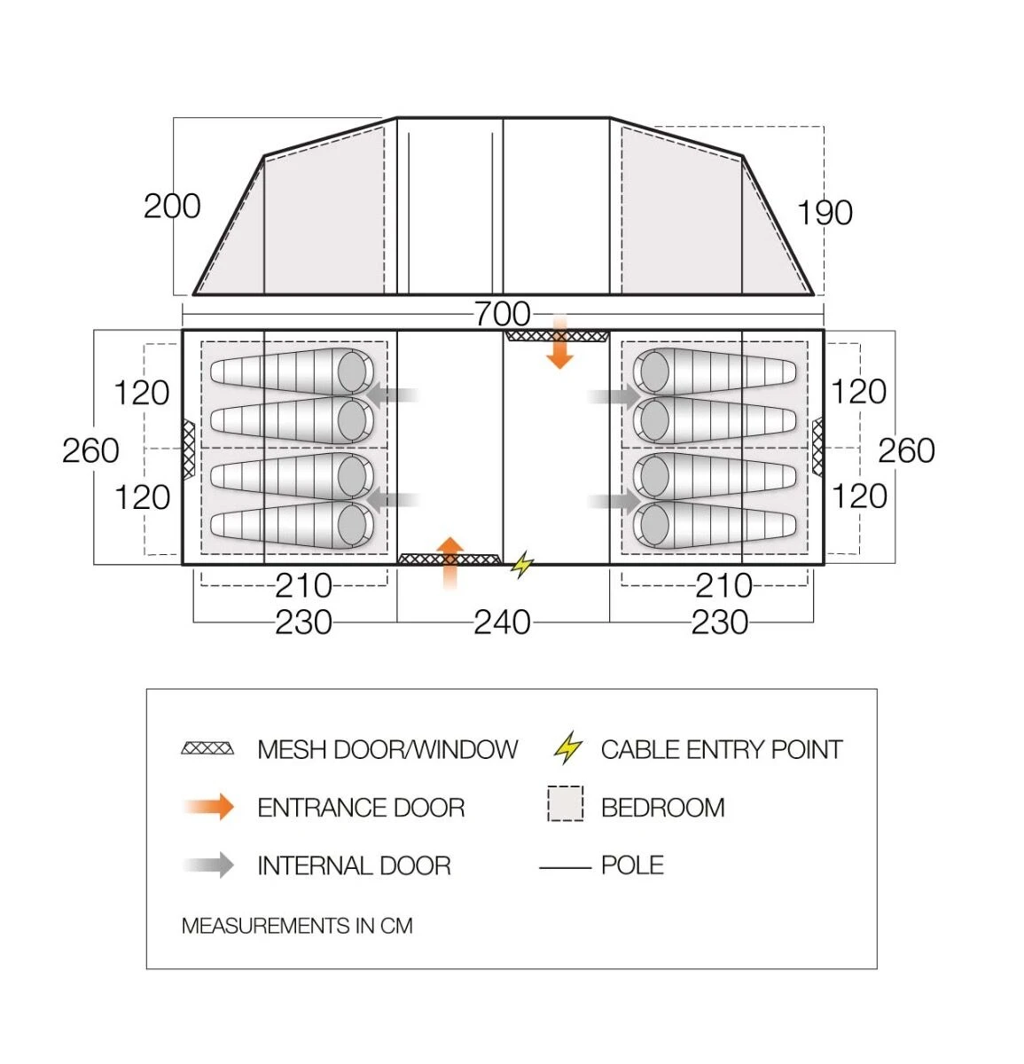 - Off-set Bedrooms offer two bedrooms sections, which are removable, should you wish to adapt the tent to give more living space should there be less people camping.